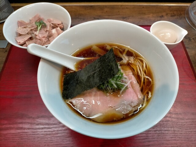 お昼に神田天丼家を訪問した後ぶらぶらしていたら裏路地にラーメン店を発見。私が好きそうな中華そばの印象。大盛りなイメージがないのでそんなにお腹空いていない日に訪問しよう。急いでお店に向かったら先客三名ほど。煮干しはどうもドロドロしたイメージがあるがこのお店のスープはそうではないことを後から発見してしまった。なので醤油蕎麦煮玉子850円の食券を買った。