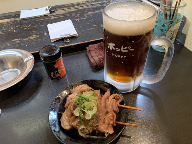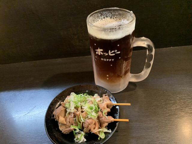 ホッピー黒、最強のハツボイルに、スジ煮、焼きはハツモト。