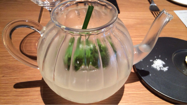 興奮を鎮めるためなのか、ここでハーブティで箸休め。水出しで抽出されるハーブの香り