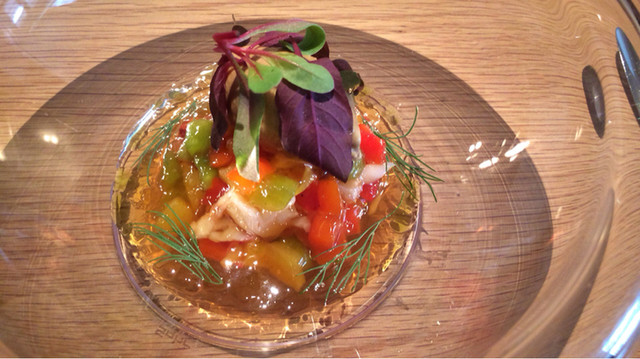 オマール海老とパプリカのコンソメジュレ。