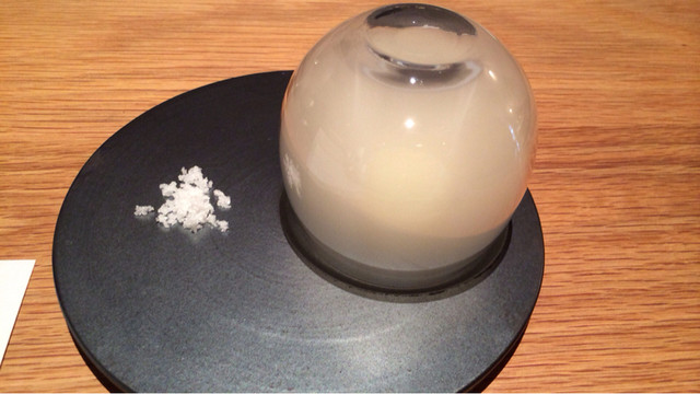 甲殻類の出汁で作ったアイスをジュレに溶かしながら頂くと、プリン体大好き親父歓喜。
