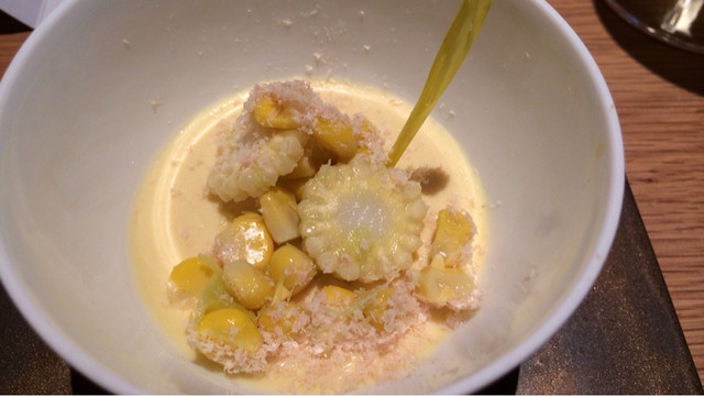今流行のゴールドラッシュを使った甘味が凝縮したとうもろこしプリンのような一品。