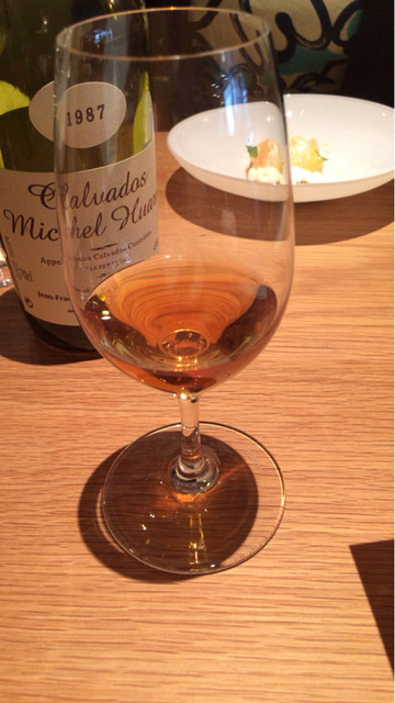 とこうなるんだねって相方と話しながら楽しみました。食後酒はリンゴ酒のビンテージ(800円)