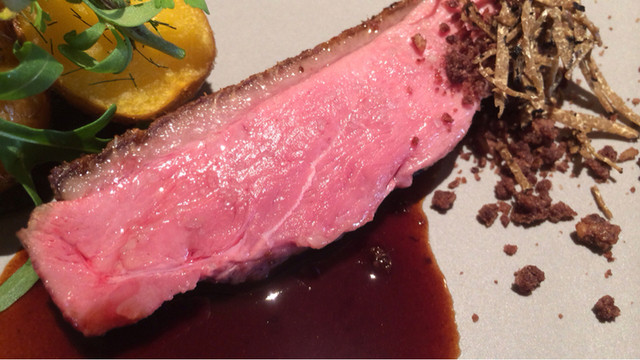じっくりと低温で火入れされた鴨。こちらも火入れが素晴らしく、あまり文句のつけるところ