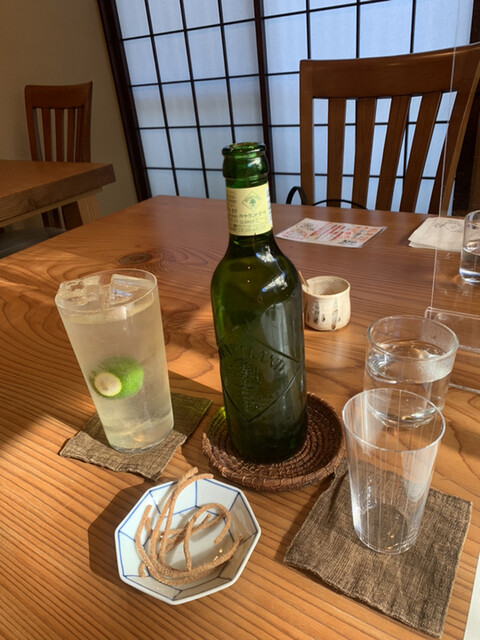 お酒はビールがハートランド、あとジンとそば茶サイダーを合わせたお酒、