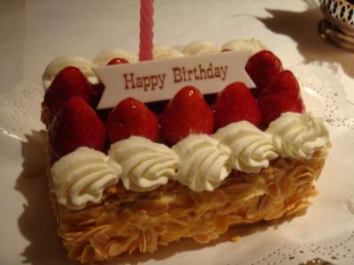 親戚より名物ミルフィーユのバースデーケーキという