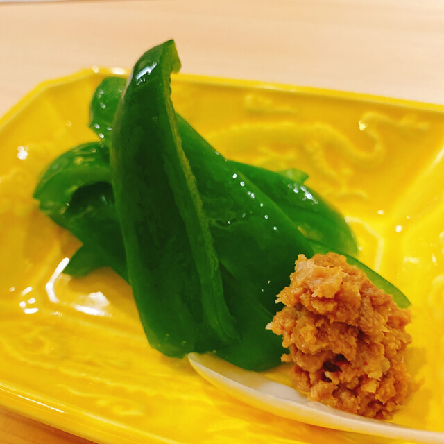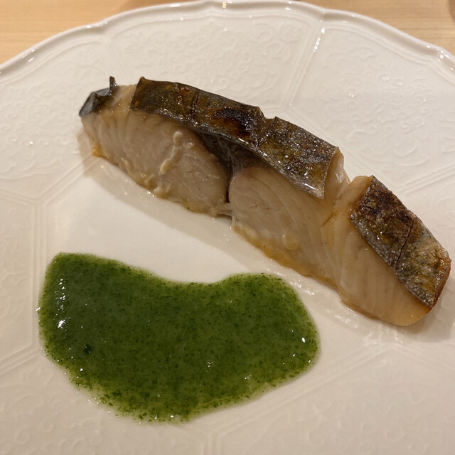 たでのソースは、通常あゆにつけて食べるけれど、今回は鰆に添えてあって、これもさっぱりでおいしい♪