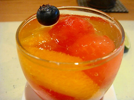 スイカ、ミカンがゴロゴロ入っていて、巣立ちをかけて食べるのもいい。