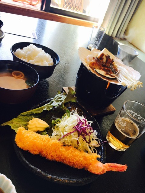 スタンダードコース 海老フライ ご飯、お味噌汁 もずく酢