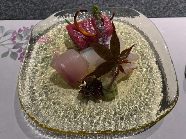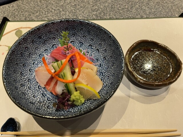 刺し盛は,南茅部産の本鮪,明石の蛸等で新鮮さが際立つ