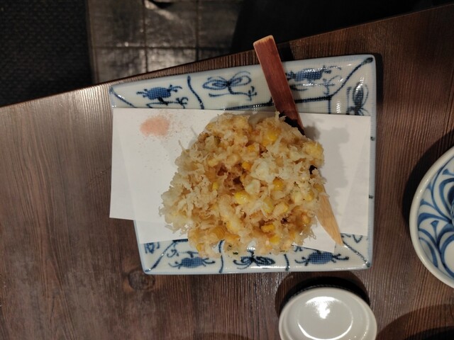 今日までが夏メニューとのことで、かき揚げもとうもろこしのかき揚げ!