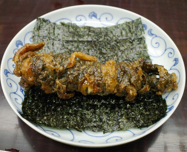 鰻の尾鰭の焼き物を海苔巻きで