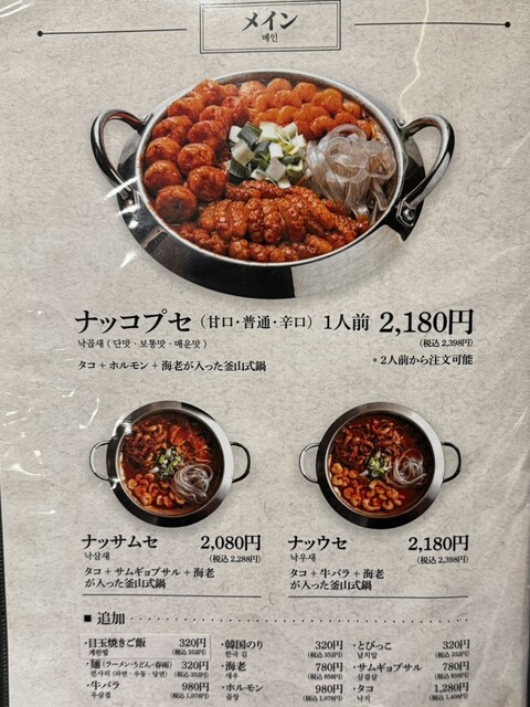 メニュー数も多く、ナッコプセを食べたい方にはおすすめのお店。