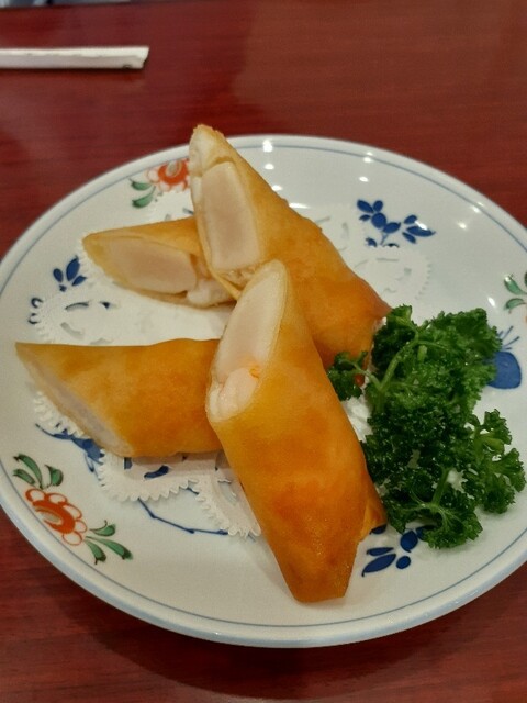 ホタテ、エビがギュ~っと詰まった春巻き。