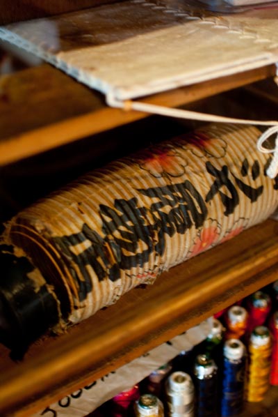 以前はマツヤ履物店だったのか? 当時の提灯が飾られています。