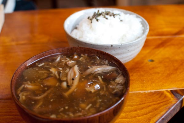 で、お楽しみの仙人直伝キノコ汁です。定食だからセットでついています。