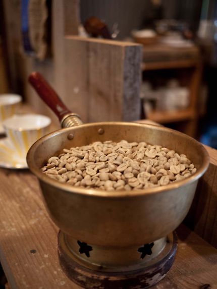 小型手回しの焙煎機を使って焙煎しているのがすごい