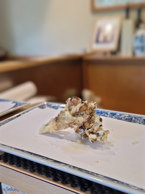 伊東の一碧湖近くに美味しい天ぷら専門店があるの聞いて昼にコースを予約をしてお邪魔しました。シーズンオフの一碧湖だったので雰囲気は落ち着いて静かなたたずまいでしたが高級感を感じられる天ぷら専門店で、案内されたカウンター席は揚げ場の真ん前というアリーナ席しかも他にお客は居なく貸し切り状態。料理長と私の間には妙な緊張感が走りました。今回コースだったのですが頼んだコースには入っていなかったこちらのお店名物の丸十も追加で頼めるが時間がかかるので先に言ってほしいとの事で注文させていただきました。厳選された旬の食材を1品ずつ揚げてくれて簡単な説明とともに頂きます。一番最初にエビを揚げてきたのサプライスでした。最初は寡黙な職人かと思ったら手が空いてきたら天ぷらの揚げ方とか移転してきたころのお店の話だとかいろんな話をして下さり最初の緊張も解けて美味しい天ぷらを頂きました。丸十はサツマイモを丸ごと1本揚げたものでホッコリ甘くて美味しかったです。あらごしの大根おろしをたっぷり天つゆに入れて天つゆの濃度を調整しながら食べるのがおすすめのようです。最後の締めのご飯ですが、かき揚げ天丼、天茶漬け、かき揚げとご飯から選べてよかったです。