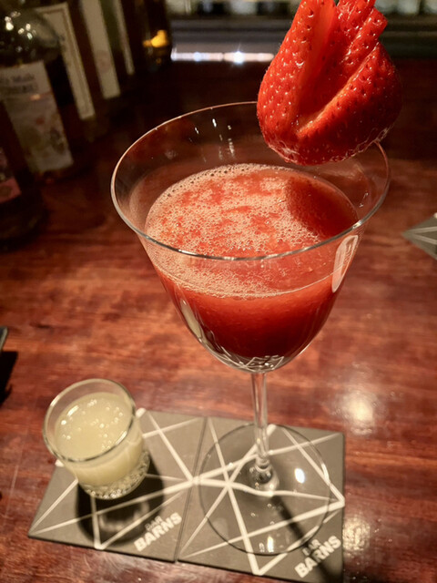 カクテルは基本的にはおまかせですが、私の好きなブルショットといちごムースカクテルも入れてもらいました。