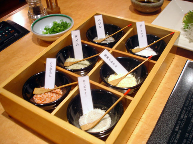 ・新鮮な黒豚肉を6種類の塩味で堪能できる