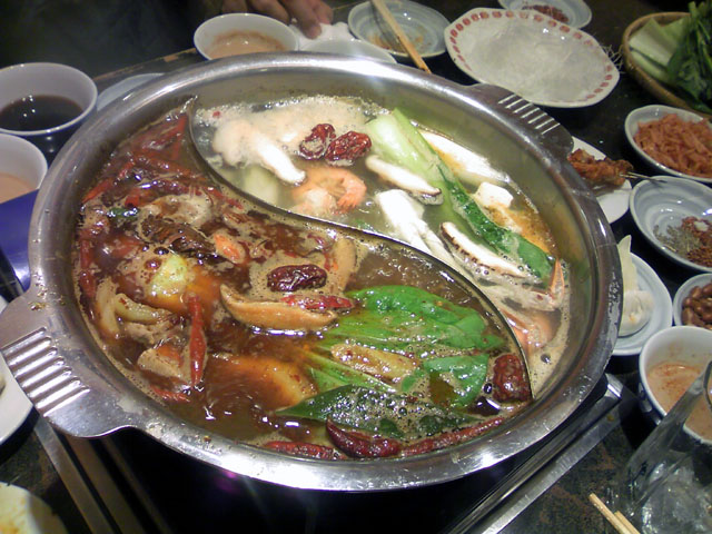 火鍋は2色の鴛鴦(オシドリ)鍋