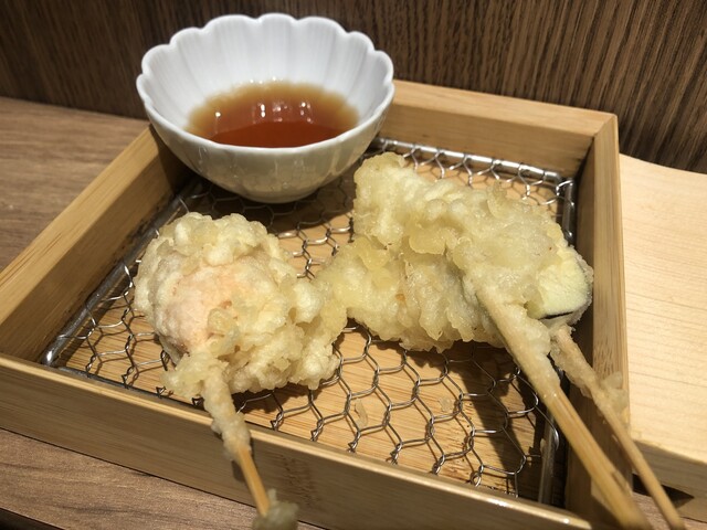 天ぷらは天つゆまたはお塩でいただきます。素材の味で何もつけずに食べてもおいしいです。