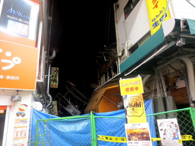 2014/3/7早朝、横丁で火災があり飲食店11棟36店舗が被害に。