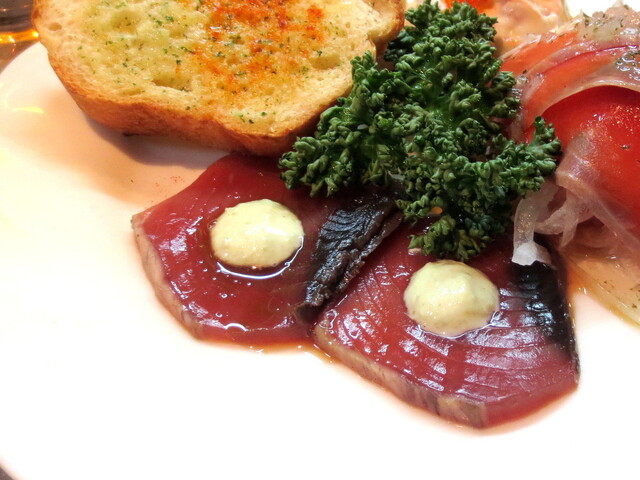 かつおのたたきワサビソース。
