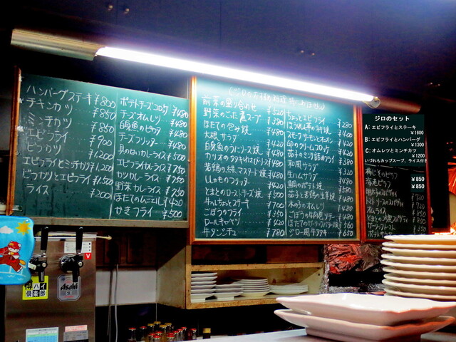 ずらりと並ぶ黒板メニュー。