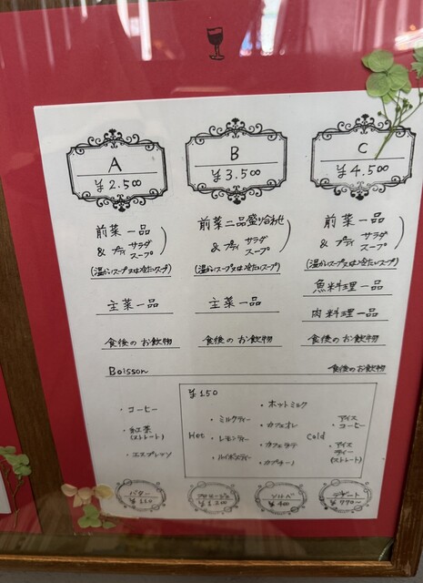 ⚜️Aコース️@2500円:前菜一品、プティサラダ、スープ、メイン一品、食後の飲み物