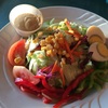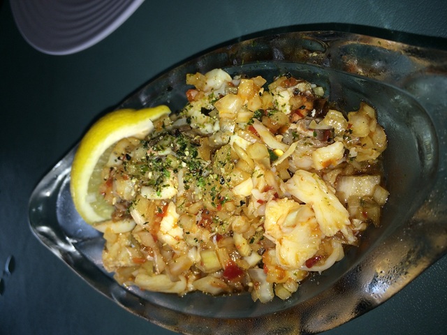 前菜はシュリンプのガーリック和え、シーザーサラダ。