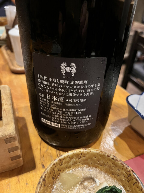 まずは十四代の雄町、中どりの純米吟醸をオーダー。