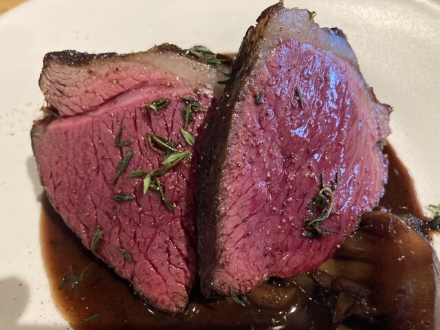 鹿は、火入れ完璧!キノコ入りのソースだけでも、ワインが進む!