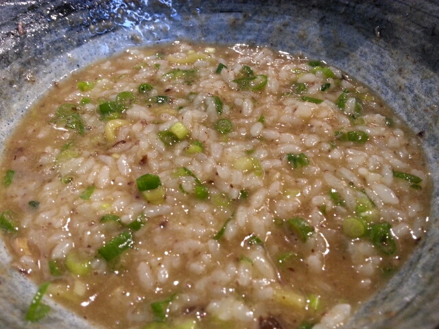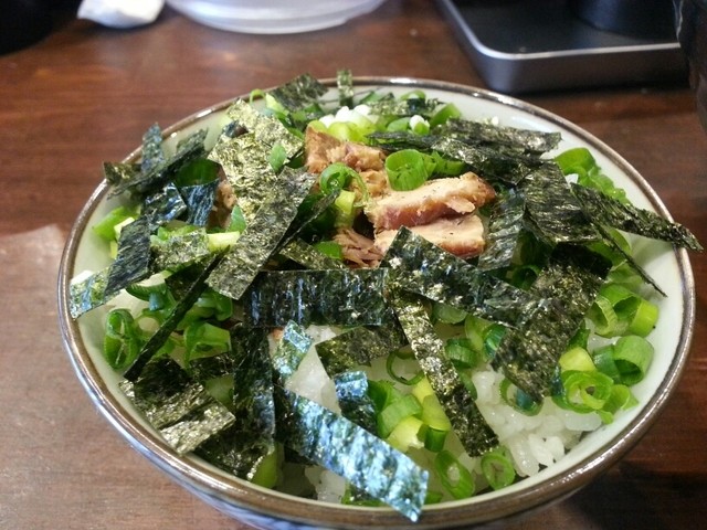 山下商店の名物でもある『替え飯』のようなメニューが無かったので、自分で白ご飯とネギを追加オーダーして「自己流替え飯」を作って食べていると店主さんが興味深そうにご覧になられてて、「その食べ方美味しそうですね、今日のまかないで食べてみます」と仰ったので、刻み海苔とチャーシュー細切れとネギをご飯とセットにして『替え飯』メニューを是非作って下さいとお願いして来ました。