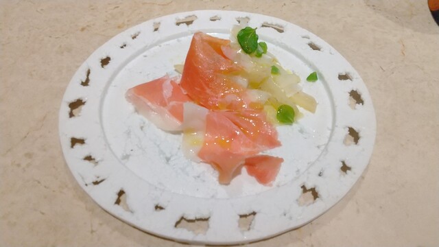 レタスとケール?がこんもりとお皿に盛られ、ベーコンとニシンがアクセントになったサラダは、それだけで、満足な気分にさせられる。