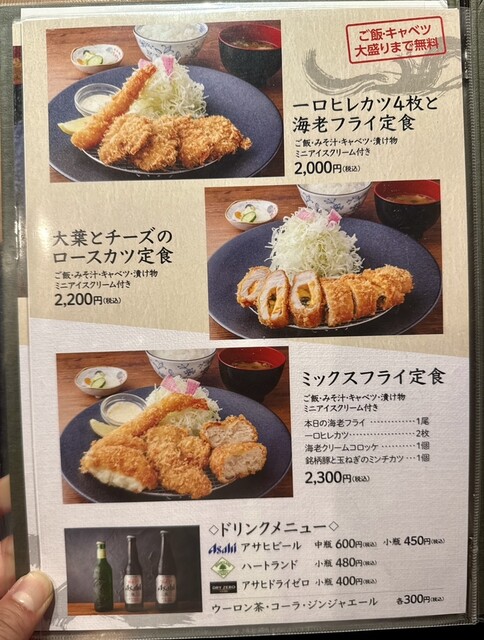 なお、とんかつ類は定食が基本ですが、単品でも注文可能です。(定食▲300円)