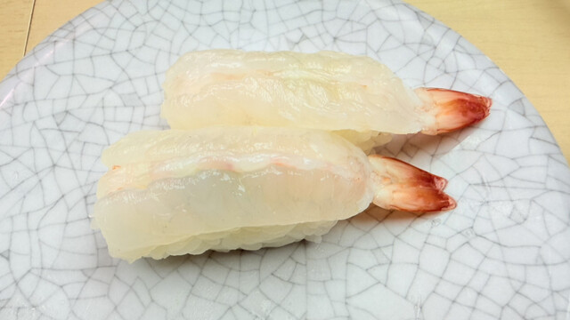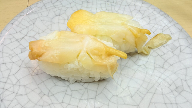 シャリは売り文句通りの人肌。ネタの厚さは大手回転寿司やスーパーのテイクアウトより厚みが有る。後は次々と小肌、生海老、つぶ貝を口頭でオーダー。個別オーダーの握り立てが食べられるし、レーンの皿も短いレーンのせいか品質低下が見られないのが素晴らしい。
