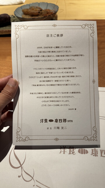 この日は南船場の名店「とんかつ康四郎」チームによる「洋食康四郎1970」前万博が行われた1970年にスポットをあて「昭和」「平成」「令和」と独自の進歩をした「洋食」を表現