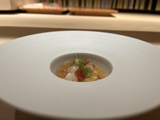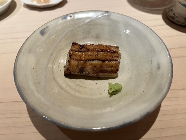 飽の磯焼き 鮑を肝ソースに付けて食べる