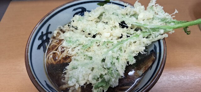 待つことしばし、揚げたての春菊天を載せたうどんが登場