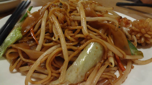 エビ、イカといった海鮮に野菜がのった焼麺は、きしめんのような食感ですかね。太さもまばら、手作りって感じです。これも美味しく頂けました。