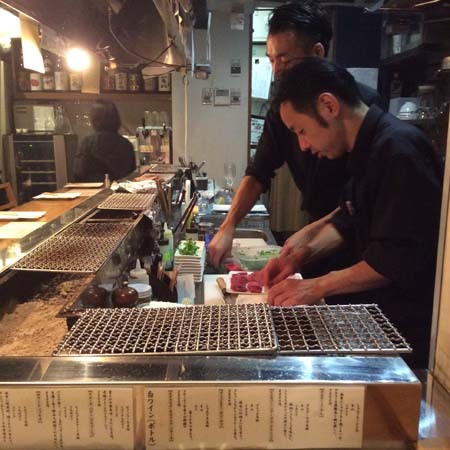 カウンターに座ると店員さんが炭火で肉を一枚一枚調理してくれます。