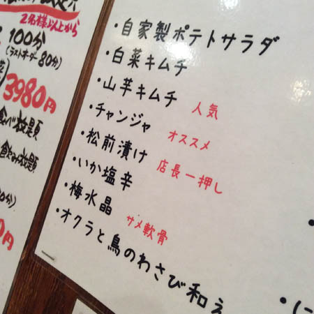 まずはオーダーですが、レギュラーコース(100分)とワイドコース(120分)という2つの食べ放題コースがあるのですが、食が細い夫婦ですので ここはアラカルトでお願いする事にしました。