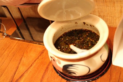 テーブルの上には、とうがらしの十倍の辛さというお店特製のソース、