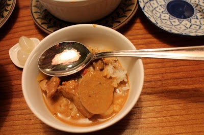 小皿にご飯をとってレッドカレーを混ぜながらいただきます。