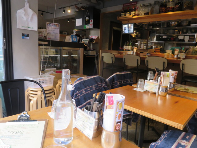 ーっぽいベジボウルメインのお店ではありますが、男性客も結構います。店長に挨拶して3名とのことで4人掛けテーブルを案内
