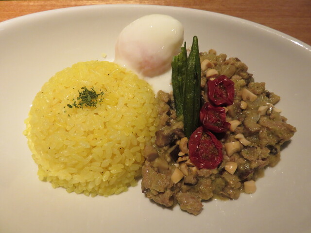 カレーの上のオクラとミニトマトはドライタイプでスパイスカレーどの相性は良かったです。ドライなのに粘りを感じるおくらの底力を感じ取りました。カレーはスープのないタイプ。自分にはピリ辛さはあまり感じなかったので食べてても汗が吹き出ることはありませんでした。