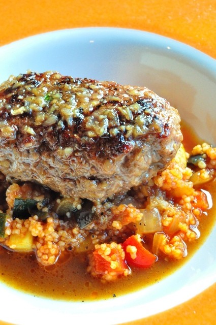 仔羊のハンバーグ。クスクスとラタトィユ、クミン風味に感激。