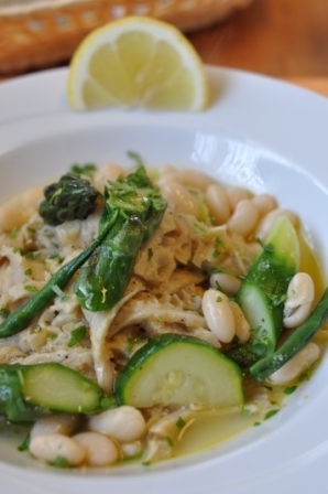 すずきのソテー・スープ仕立て彩り野菜添え (半人前です)