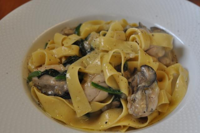 自家製麺のタリアテッレ ほうれん草と牡蠣